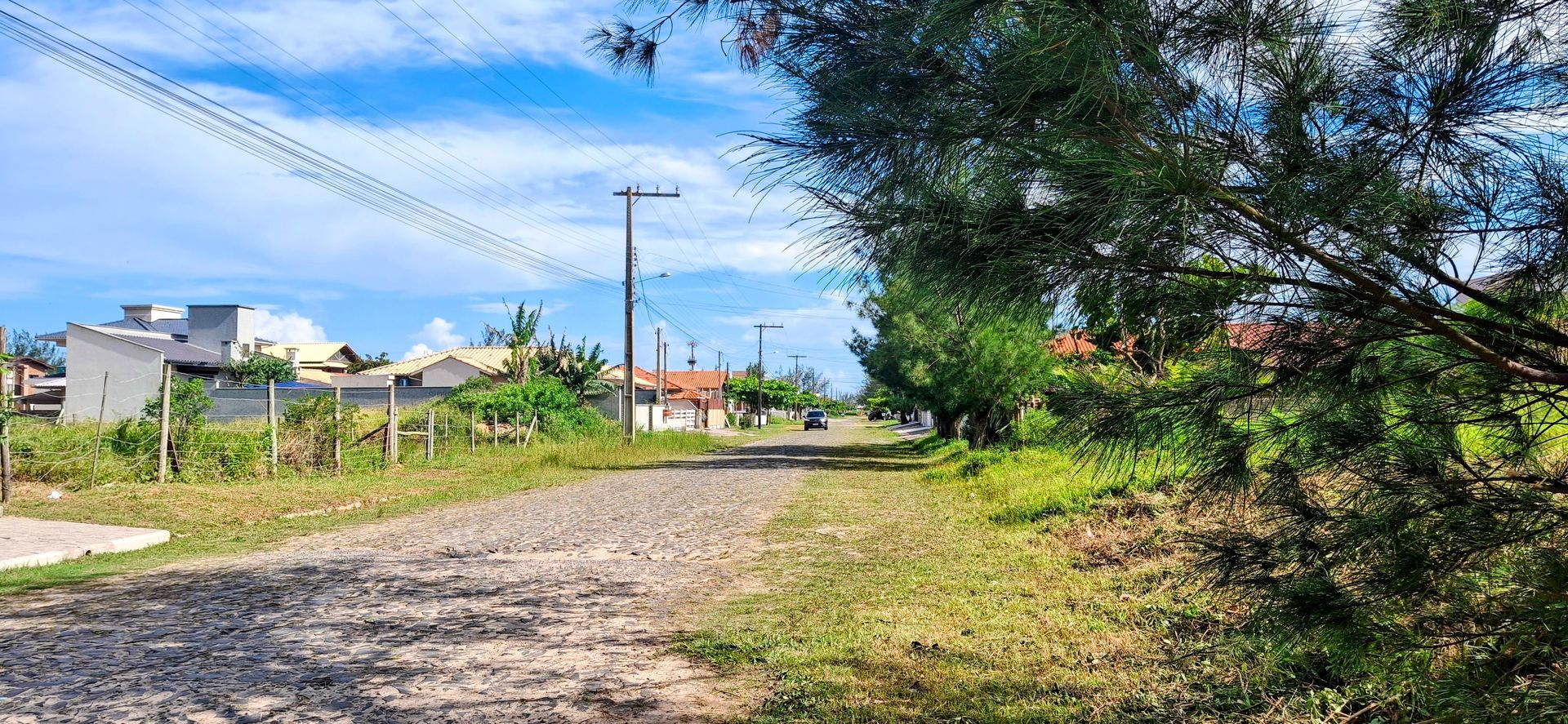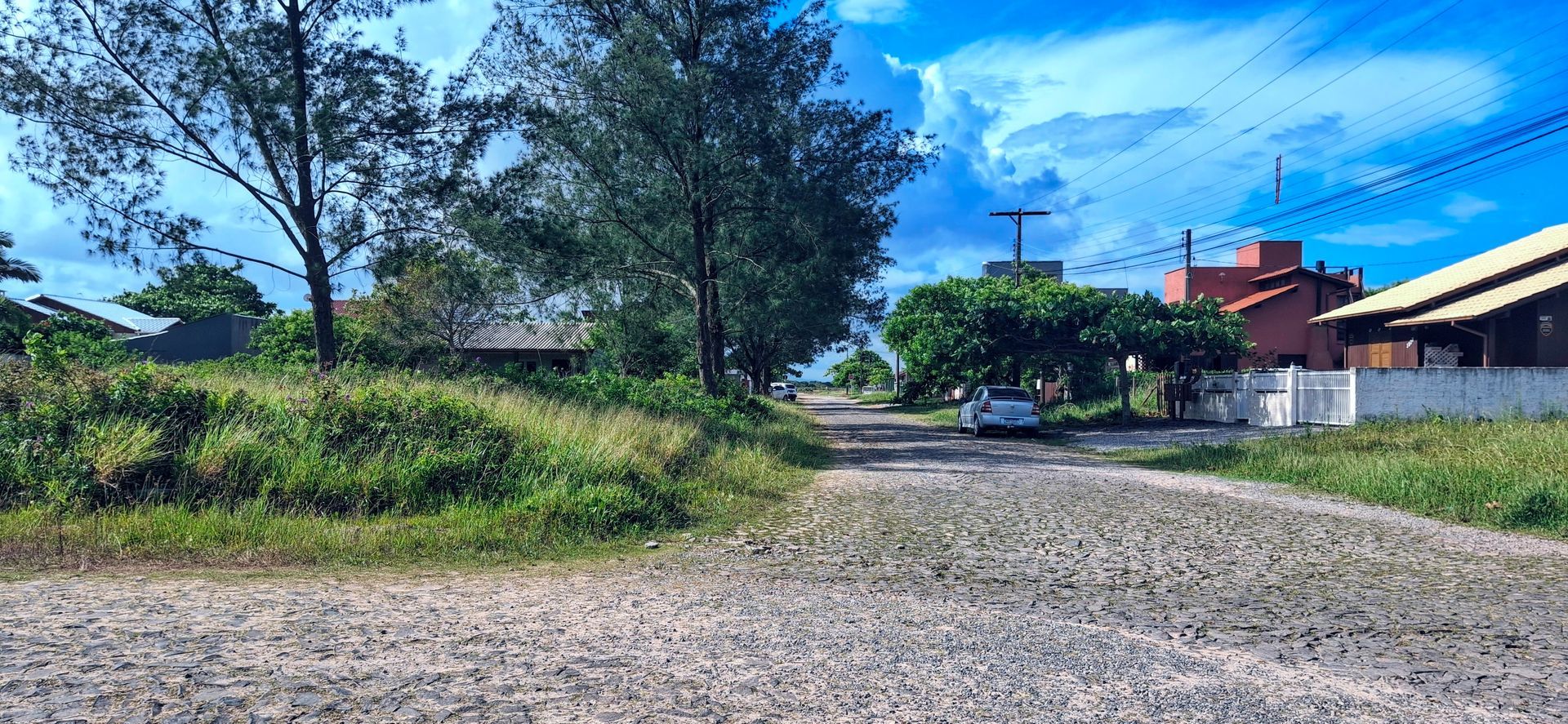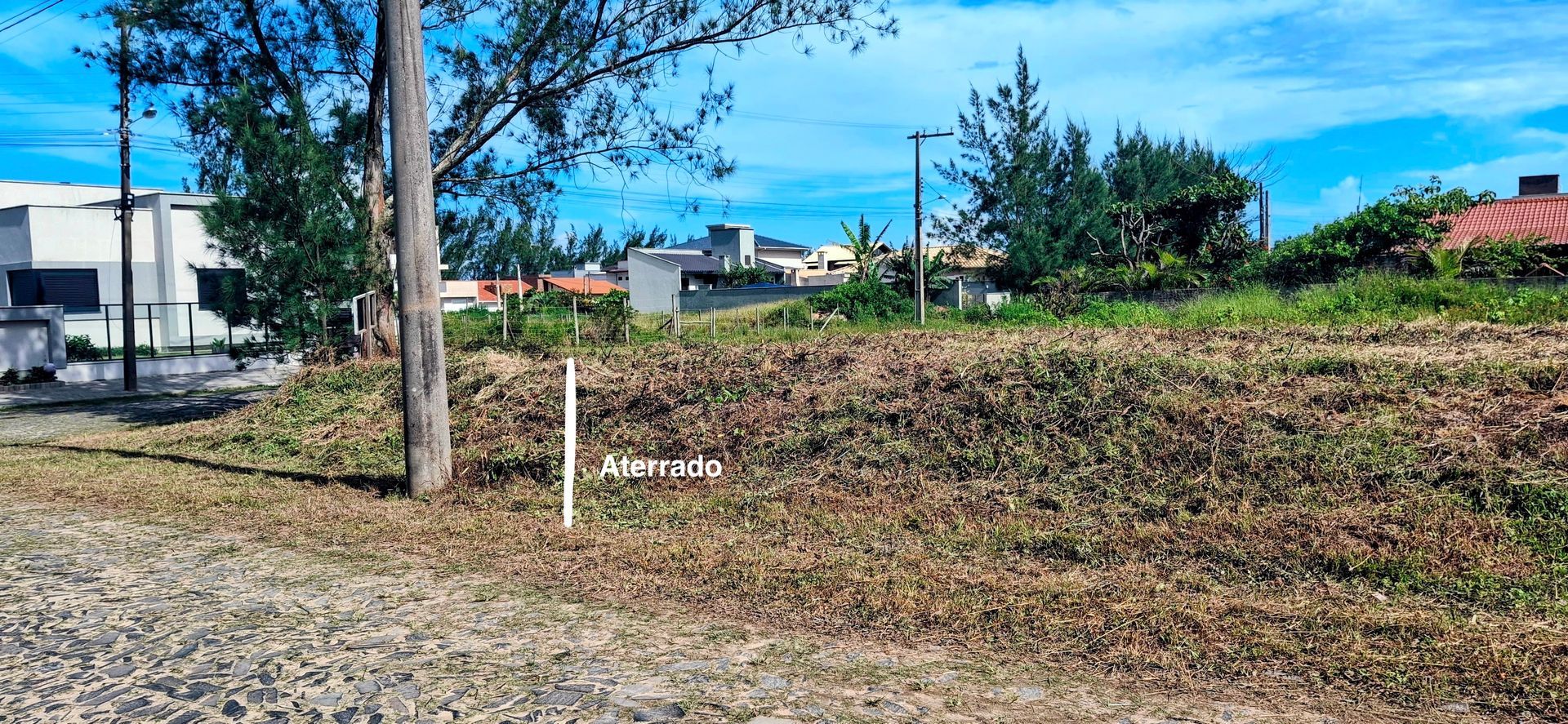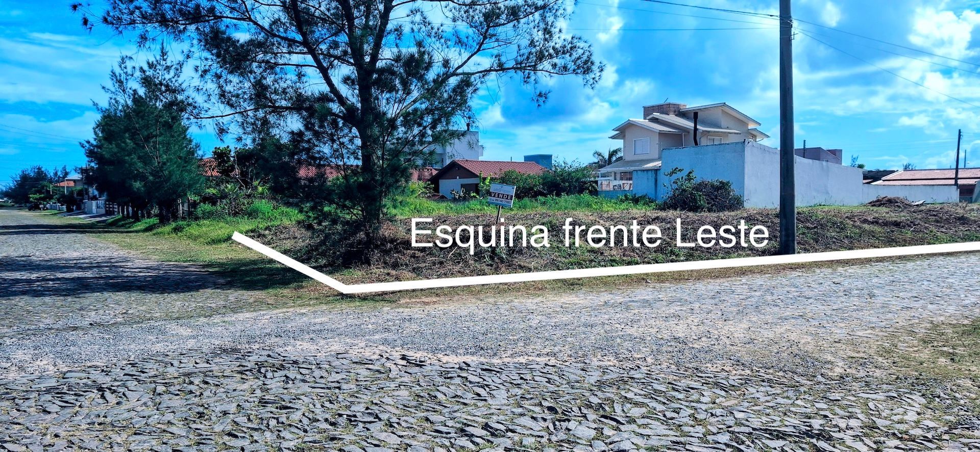 Terreno de esquina, frente Leste, alto, bem aterrado.