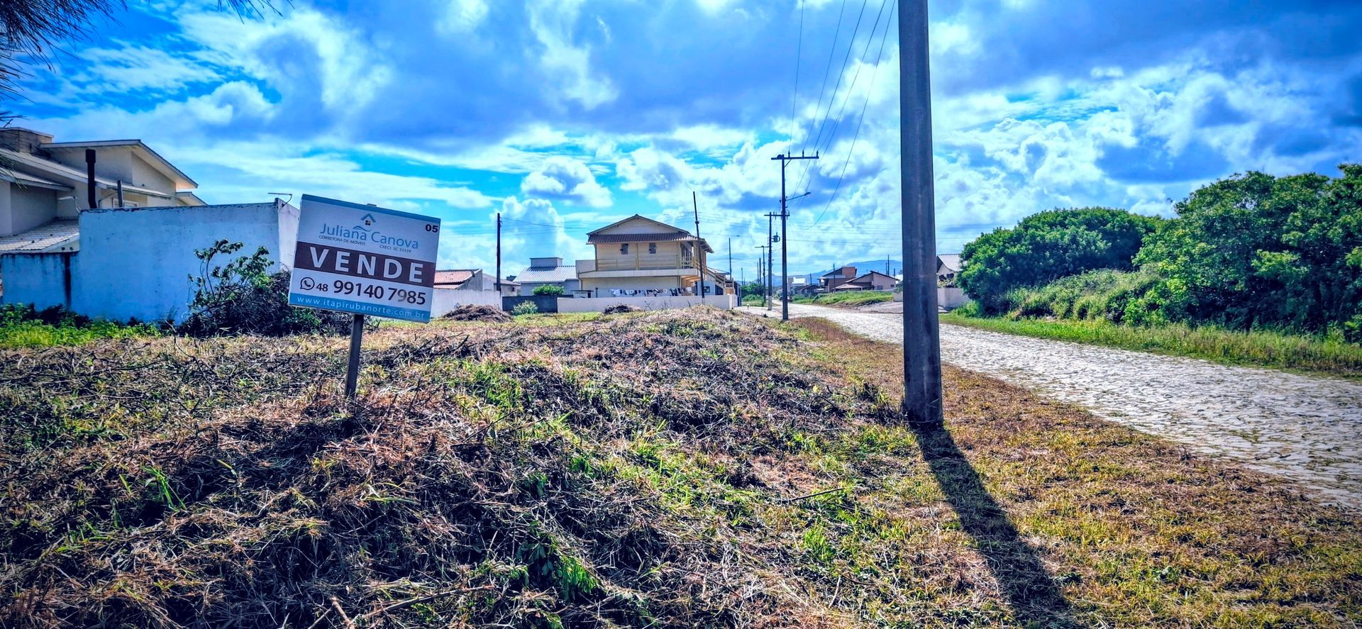 Possui ruas calçadas, redes de água, luz e fibra óptica em frente. Documentos OK.